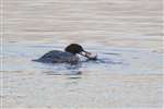 Female Goosander (Mergus merganser) eating a fish, Littleton Reservoir, Dams to Darnley Country Park
