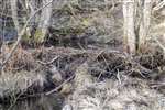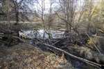 Beaver dam on the Lunan Burn below the Mill Dam, Dunkeld, showing how water is ponded back, slowing down water runoff and reducing the potential for flooding downstream.