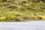Red throated diver (Gavia stellata) sitting on the land, Hoy, Orkney. This was strange since it had a well grown chick on the loch nearby. Perhaps it just needed a rest from swimming, or maybe there was a unhatched egg still in a nest. This photo was taken from a great distance with a long lens so as not to disturb the bird. This species is on Schedule 1 of the Wildlife and Countryside Act, Scotland, and it is an offence to disturb it while on or near a nest.