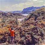 View east from Plockton across a large patch of Gorse (Ulex europaeus) towards Duncraig Castle, Creag an Duilisg and Loch Carron. Scanned from a slide taken by CE Palmar