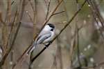 Willow Tit (Poecile montanus), Ken-Dee Marshes RSPB Nature Reserve. Willow tits in Britain live mainly in England and Wales with some in South Scotland, often in bushes rather than in trees. They have no blue, green or yellow, so can be easily told from Blue or Great tits. Although they have a thickset neck and big head which help to distinguish them from the very similar Marsh tit, it is easier to distinguish them by their calls. The sexes are alike.