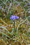 Spring Squill or Vernal Squill (Scilla verna) is a perennial which rarely grows much taller than 10 to 15cm. It produces blue, star-like, six-petalled flowers from March to August. This plant is in decline and in Britain is now mainly found on the western coasts. This photo was taken at Melvich, Sutherland.